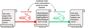Asimetrik Kriptografi: Asimetrik Şifreleme veya Açık Anahtar Şifreleme olarak da bilinir. Şekil 4’te de görüldüğü üzere bu yöntem, verileri şifrelemek ve şifresini çözmek için matematiksel olarak ilişkili bir anahtar çifti kullanır. Anahtar çiftinin biri, herkesle paylaşılabilen public key (açık anahtar) olarak adlandırılır. Diğer anahtar ise gizli tutulur ve private key (özel anahtar) olarak bilinir.